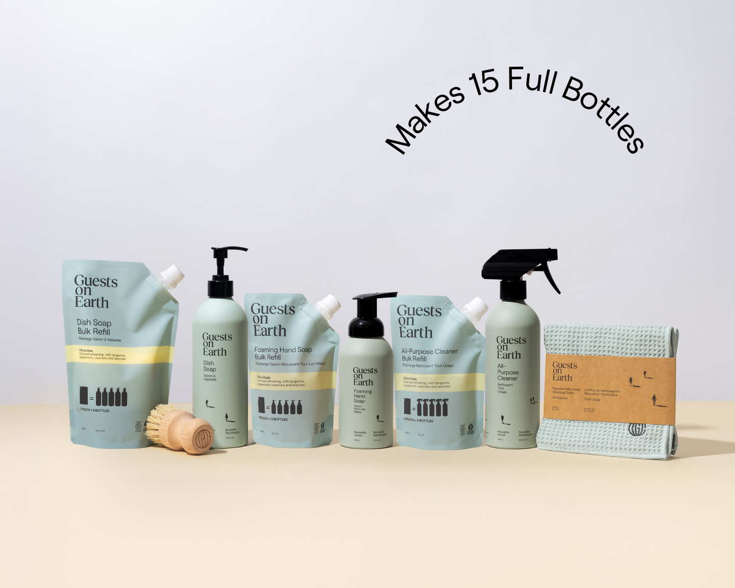 Water to the fill line of the reusable vessel.