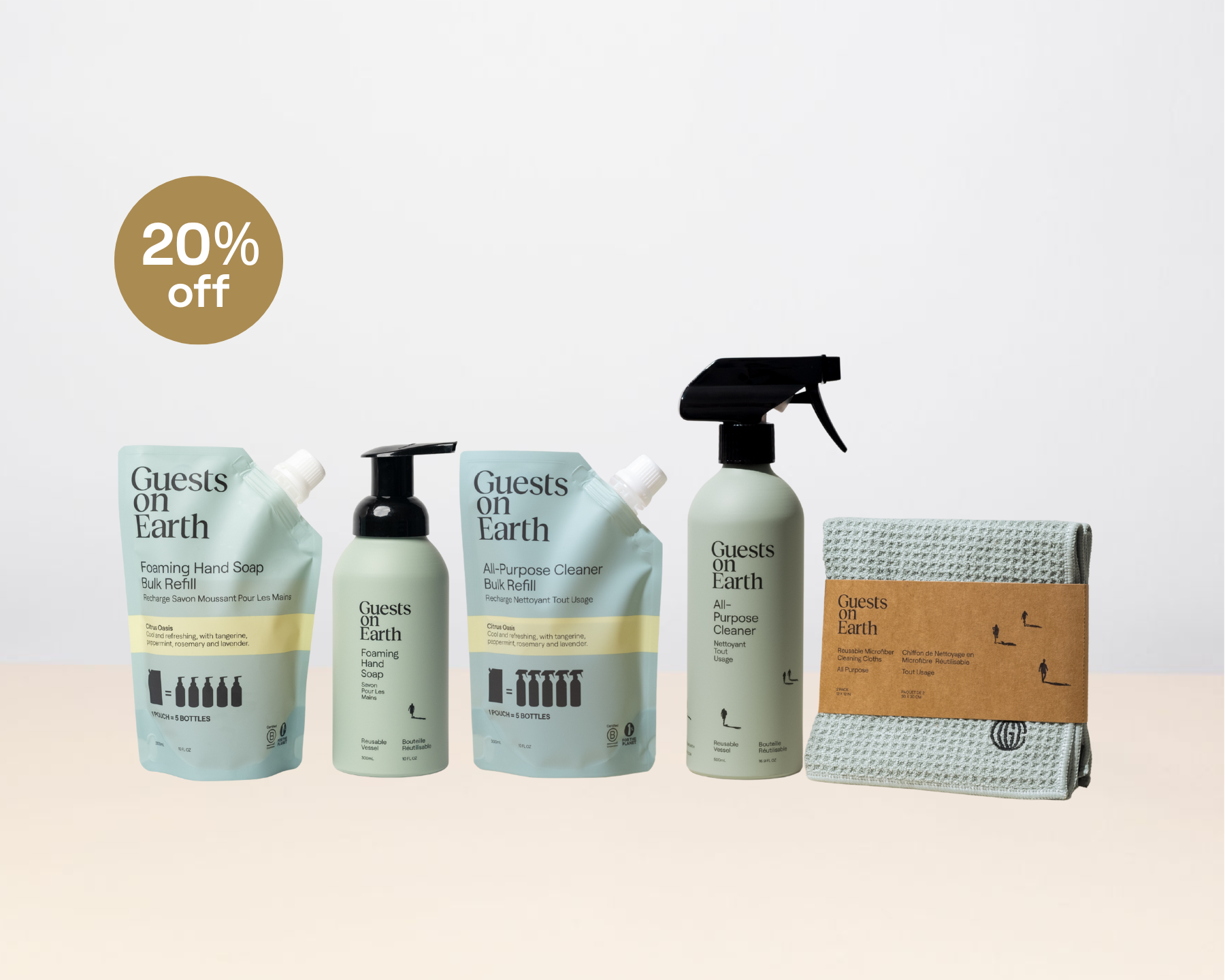The ultimate Good Guest Kit, try our nourishing Foaming Hand Soap, streak-free All-Purpose Cleaner and luxe Waffle Cleaning Cloth at a great value.