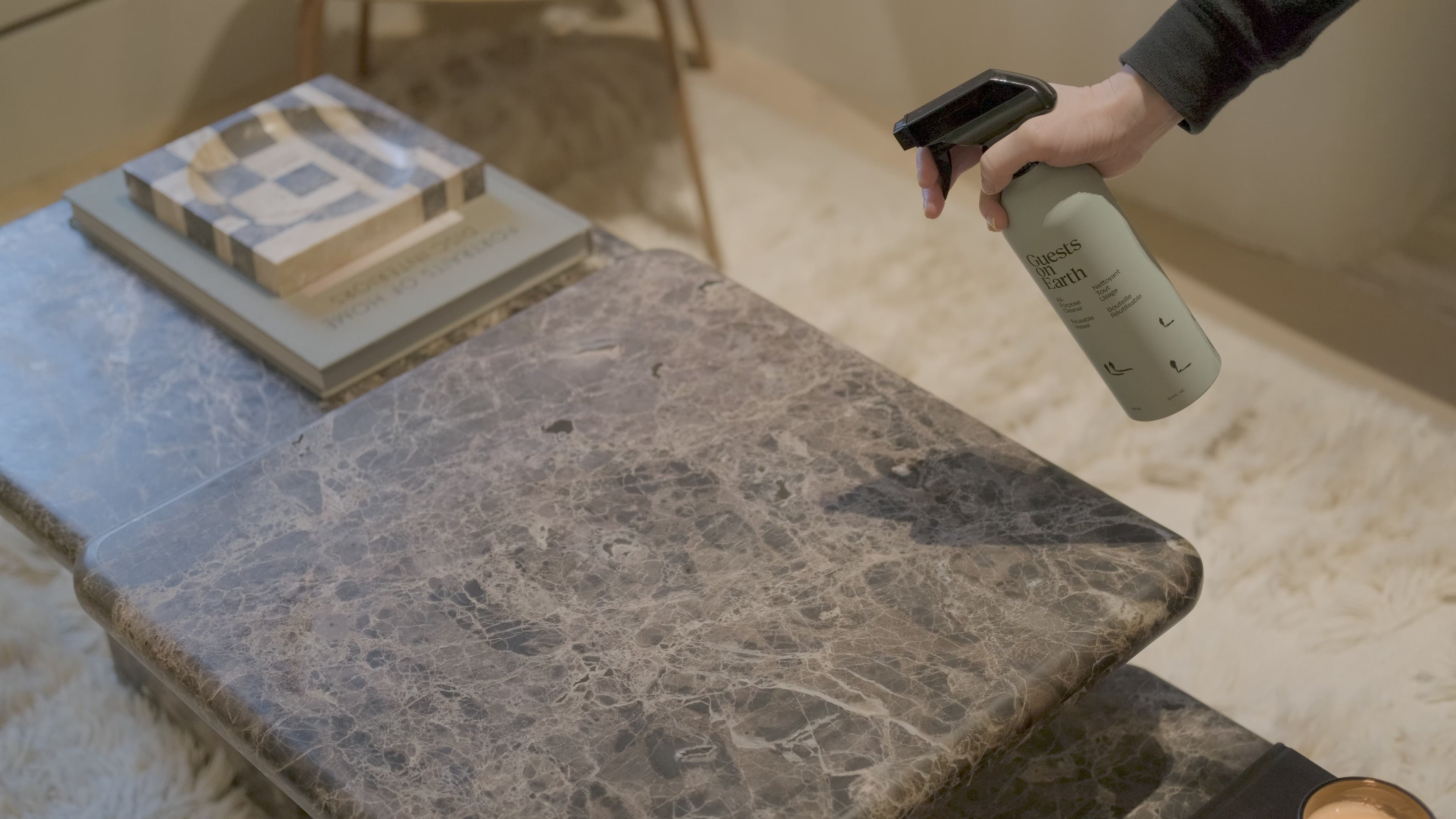 1) Pour room temperature water to the fill line of your reusable Guests on Earth All-Purpose Cleaner Vessel. It doesn't have to be exact, but if you love to measure, it's 450ML water.